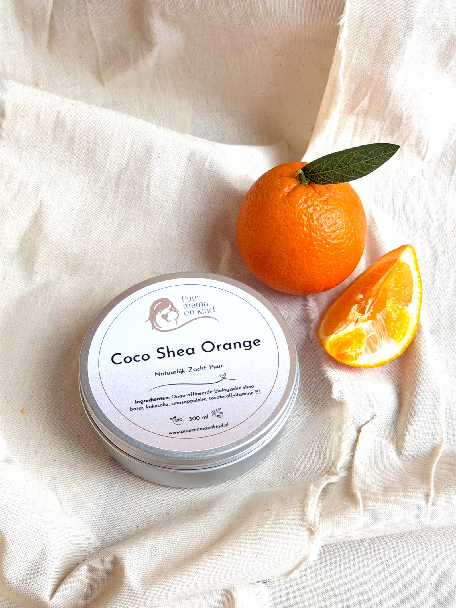 Coco Shea Orange is een hair & body butter die bestaat uit voedende ongeraffineerde Shea butter, pure koudgeperste kokosolie met een vleugje zoete sinaasappelolie, deze olie heeft ook tal van therapeutische eigenschappen. De combinatie butter bevat vele verzorgende en hydraterende eigenschappen voor je huid en haren. Vooral de aanwezigheid van vitamine A, vitamine E, antioxidanten en allantoïne (een natuurlijk eiwit) dragen bij aan sterk en gezond haar.